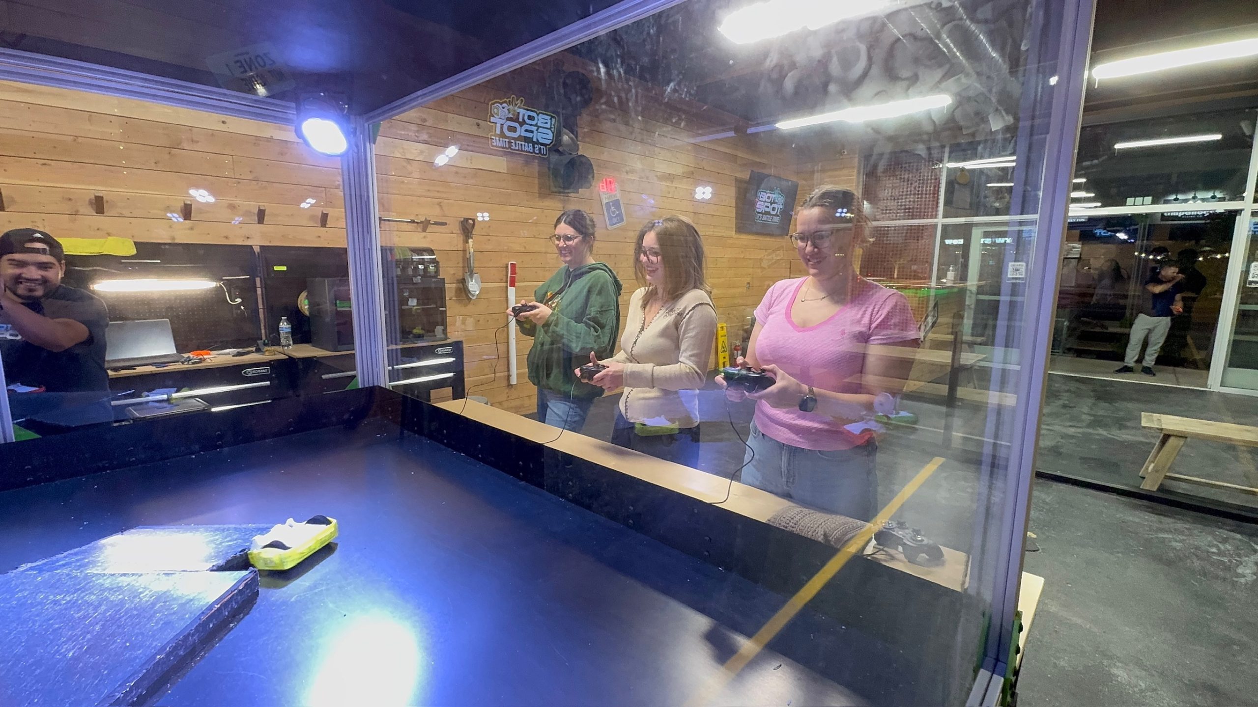 My two boys and I had a blast. Getting to play with real battle bots is a dream. They had a bunch of destructive games like destroying another players base made from blocks, and also the balloon popping game was so much fun. My son's were really good with the balloon popping games, but they enjoyed it all. The employees were super nice and joined in with us a few times which was a great time. To end the night we played some air hockey and foosball. Definitely will be back.